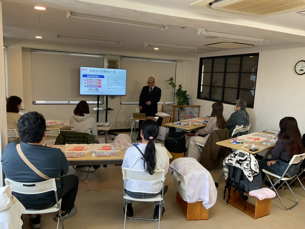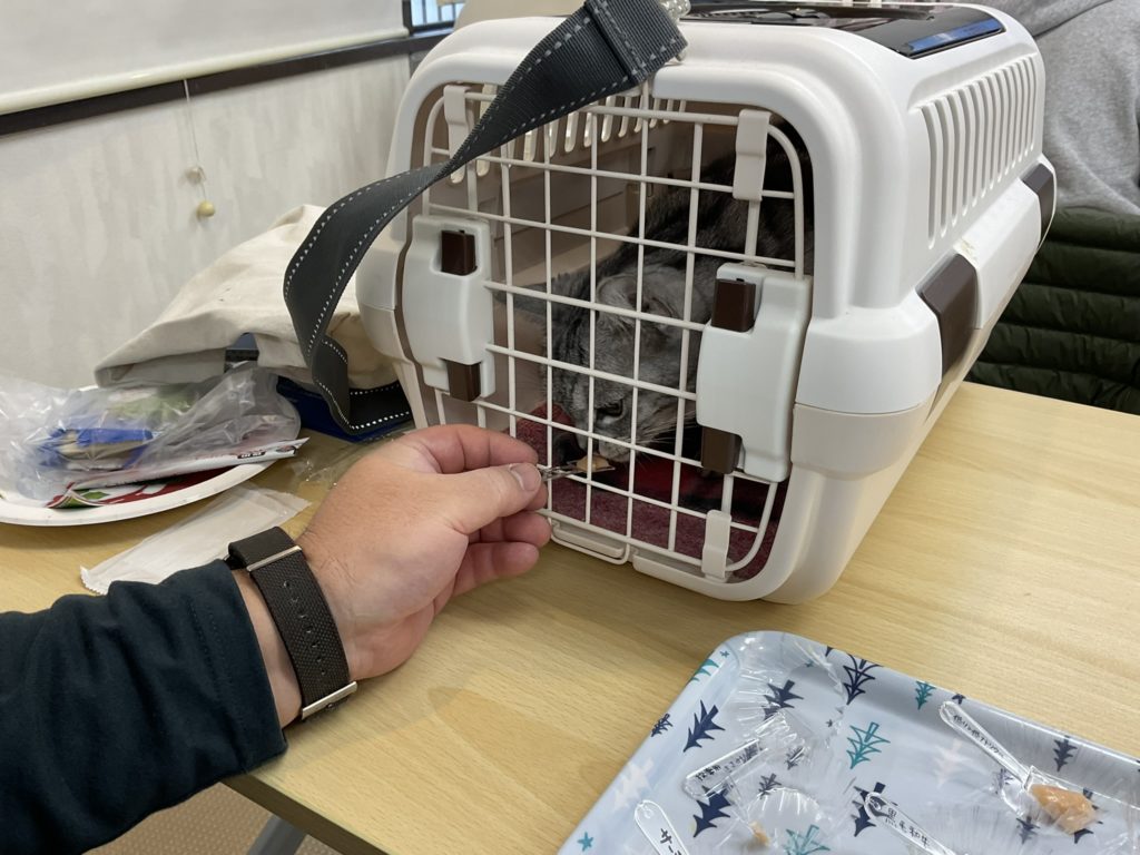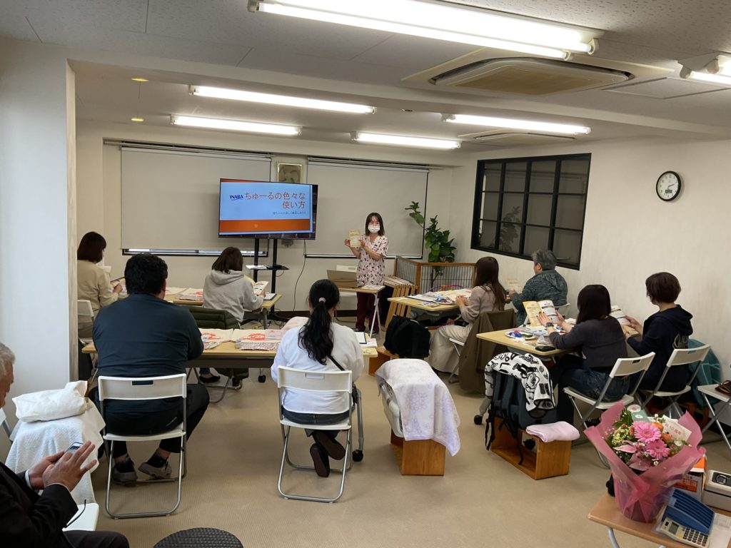 当日は6家族、猫ちゃん8頭にご参加頂き、いなばペットフード株式会社様に病院用ちゅーるの内容、ちゅーるが作られるまでの加工の流れなどについてお話をして頂きました。