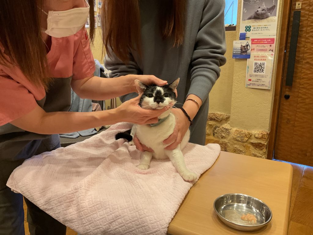 もう1頭は10ヶ月の若い猫ちゃんですが、非常に落ち着いて実習を受けてくれていました。